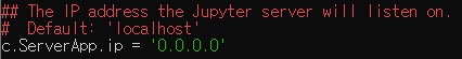 8. c.ServerApp.ip 를 찾아서 주석 해제 (# 지움) 후 '0.0.0.0' 입력