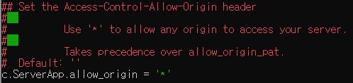 7. c.ServerApp.allow_origin 을 찾아서 주석 해제 (# 지움) 후 '*' 입력