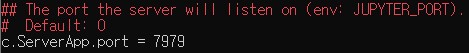 9. c.ServerApp.port 를 찾아서 주석 해제 (# 지움) 후, 이후 외부에서 jupyter 접속에 사용할 포트번호 입력