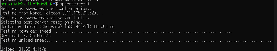 (speedtest-cli, 인터넷 속도 측정 앱, sudo apt install speedtest-cli)
