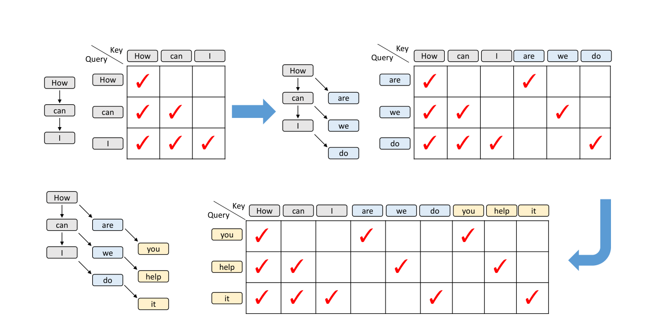 하지만 draft model이 자기 예측을 다시 입력으로 받기 시작하면, 문맥 관계는 더 트리 형태에 가까워진다.