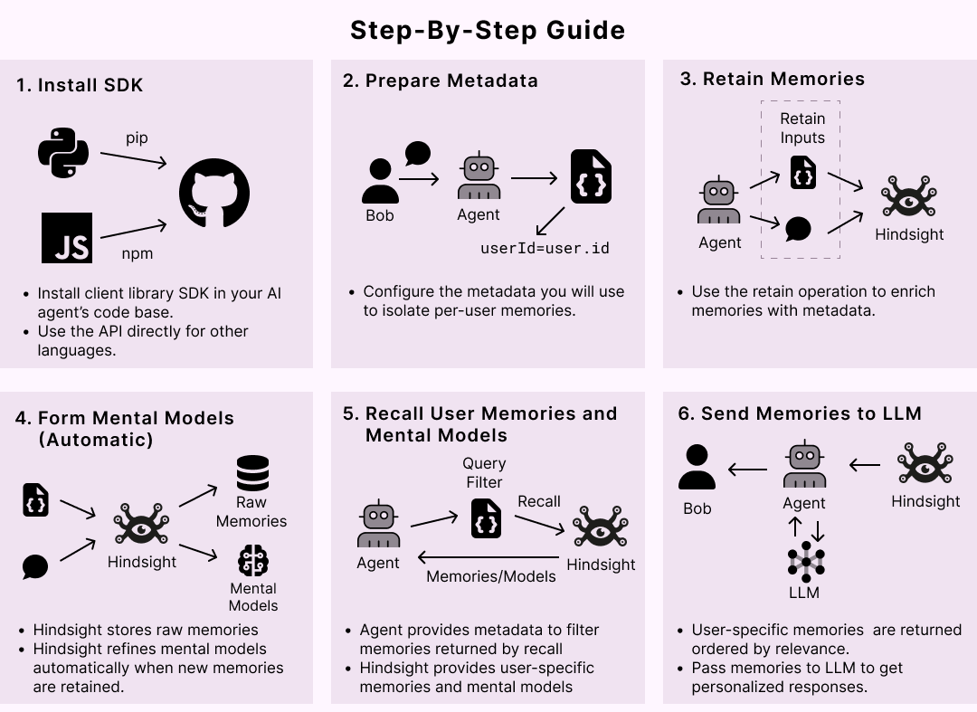 캡션: Hindsight는 “기억하는 에이전트”보다 “시간이 지나며 학습하는 에이전트”를 목표로 설계된 메모리 인프라다.