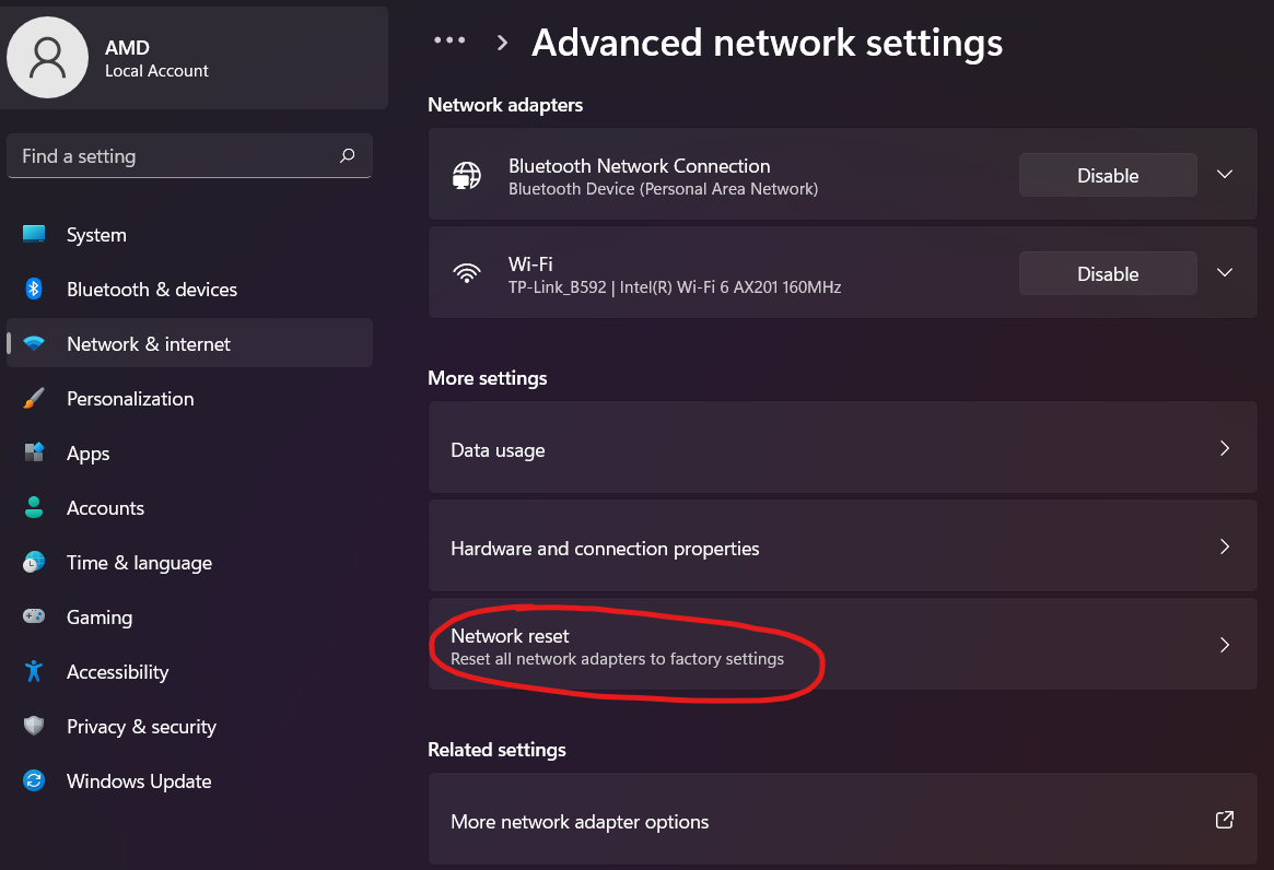 네트워크 세팅을 리셋할 때가 있다.
