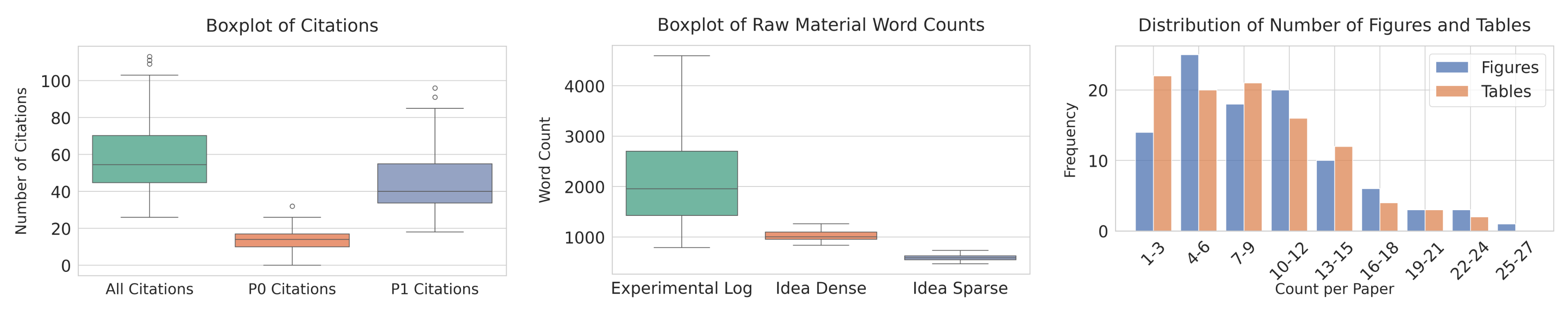 평균적으로 그림은 약 9.19개, 표는 8.13개로 CVPR의 5.20개, 4.20개보다 많고, 실험 로그 길이도 약 2,387단어로 더 깁니다.