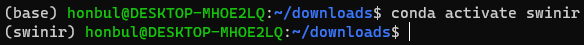 2. conda create -n swinir python=3.8 을 입력하여 swinir 을 위한 파이썬 환경 생성 (3.8 버전)