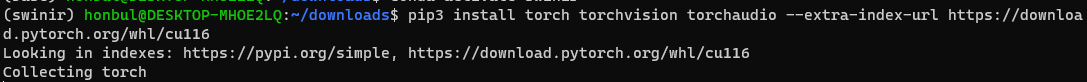 pip install torch torchvision torchaudio --extra-index-url https://download.pytorch.org/whl/cu116 입력