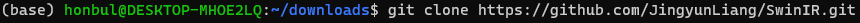 1. git clone https://github.com/JingyunLiang/SwinIR.git 입력하여 깃헙 데이터 다운로드