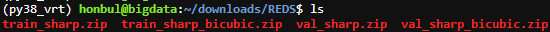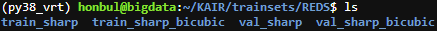 이후 REDS 폴더 내 train_sharp와 train_sharp_bicubic 폴더를 보면 validation 폴더들이 옮겨져서