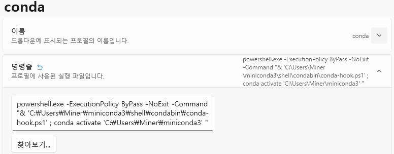powershell.exe -ExecutionPolicy ByPass -NoExit -Command "& 'C:\Users\Miner\miniconda3\shell\condabin\conda-hook.ps1' ; conda activate 'C:\Users\Miner\miniconda3' "
