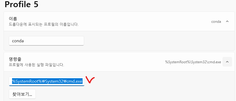 7. 명령줄 부분에 복사한 powershell.exe 부터의 target 붙여넣기
