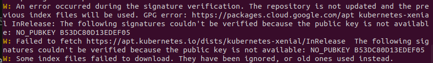 아래와 같이 NO_PUBKEY warning 출력 시