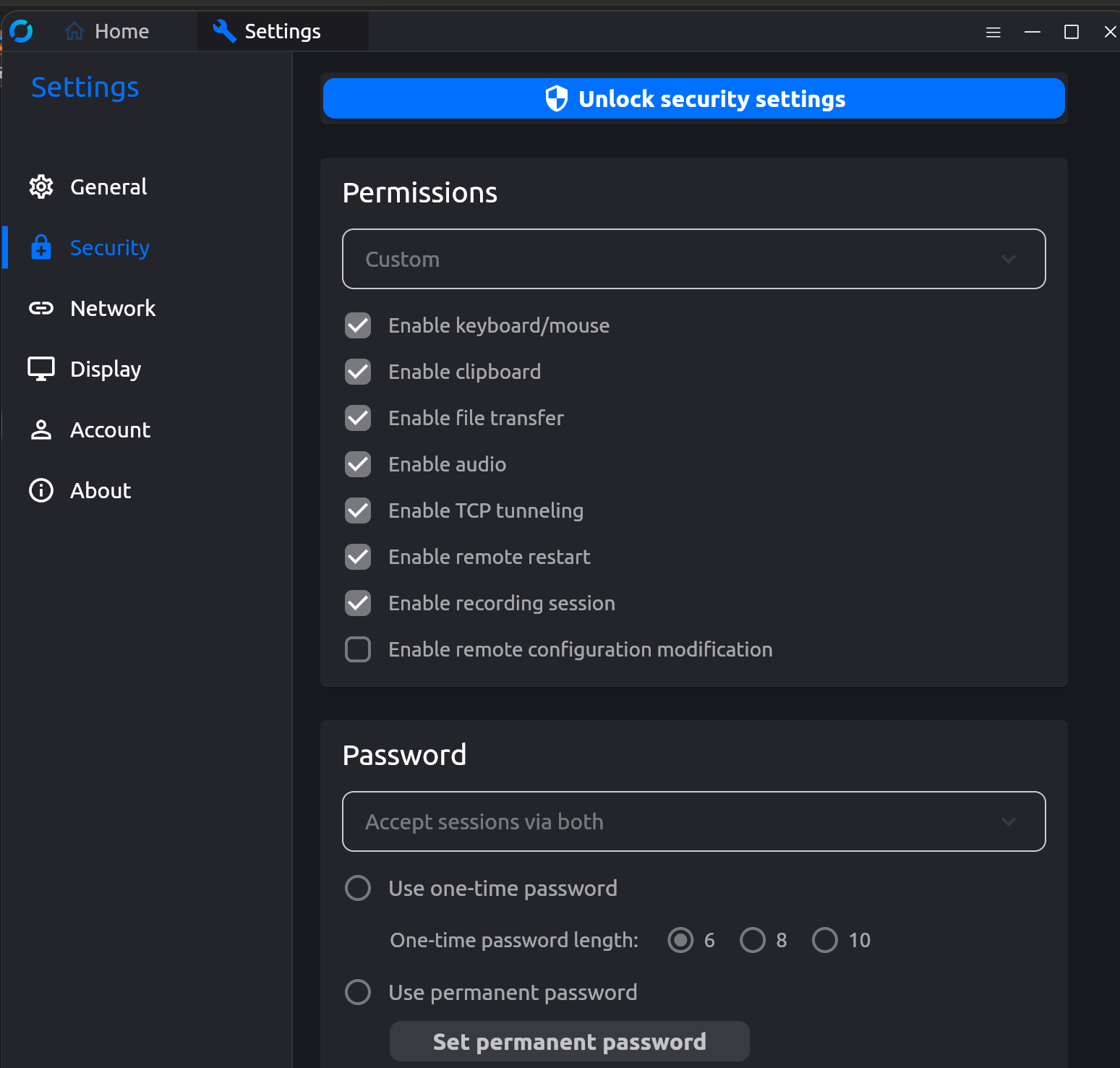 Setting - Security - Unlock security settings (클릭) - Set permanent password
