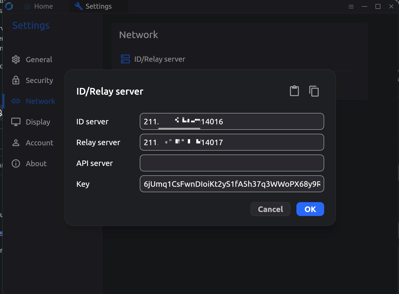 - mobile의 경우 relay 서버 값을 입력하지 않고 ID server 값만 입력하여 접속가능