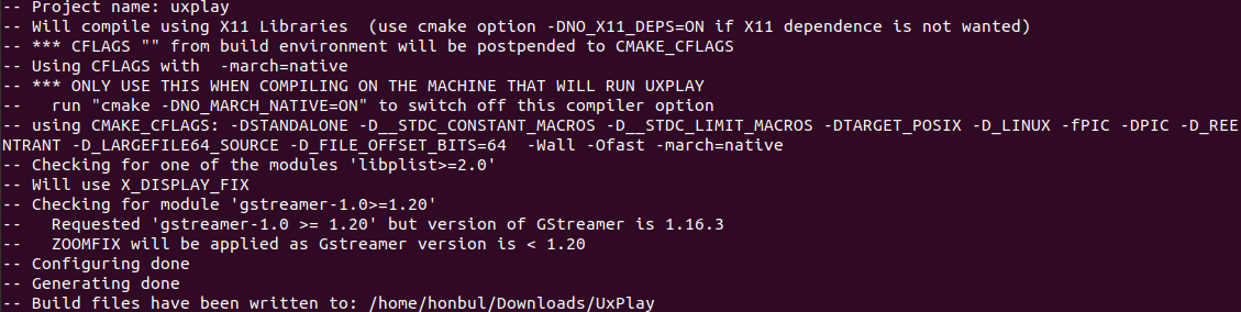 다운받은 Uxplay git 폴더에서